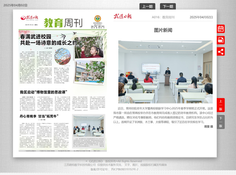 學(xué)雷鋒、做志愿、服務(wù)改革建新功——我校開(kāi)展學(xué)雷鋒志愿服務(wù)月活動(dòng)2025-04-07為深入貫徹落實(shí)習(xí)近平總書(shū)記關(guān)于弘揚(yáng)雷鋒精神的重要論述,深刻把握雷鋒精神的時(shí)代內(nèi)涵,引領(lǐng)常紡青年在志愿服務(wù)實(shí)踐中大力弘揚(yáng)“奉獻(xiàn)、友愛(ài)、互助、進(jìn)步”的志愿服務(wù)精神,今年3月,以“學(xué)雷鋒、做志愿、服務(wù)改革建新功”為主題,系統(tǒng)部署開(kāi)展2025年“學(xué)雷鋒”志愿活動(dòng)月專項(xiàng)活動(dòng)。通過(guò)組織全校師生開(kāi)展30余場(chǎng)主題鮮明、形...省委第十巡視組巡視常州紡織服裝職業(yè)技術(shù)學(xué)院黨委工作動(dòng)員會(huì)召開(kāi)2025-04-04根據(jù)省委關(guān)于巡視工作的統(tǒng)一部署,2025年4月2日,省委第十巡視組巡視常州紡織服裝職業(yè)技術(shù)學(xué)院黨委工作動(dòng)員會(huì)召開(kāi)。省委第十巡視組組長(zhǎng)李圣華作了動(dòng)員講話,對(duì)深入學(xué)習(xí)貫徹習(xí)近平總書(shū)記關(guān)于巡視工作的重要論述、關(guān)于教育的重要論述和對(duì)江蘇工作的重要講話精神,認(rèn)真貫徹落實(shí)全省巡視巡察工作會(huì)議暨對(duì)村巡察工作推進(jìn)會(huì)、省委...